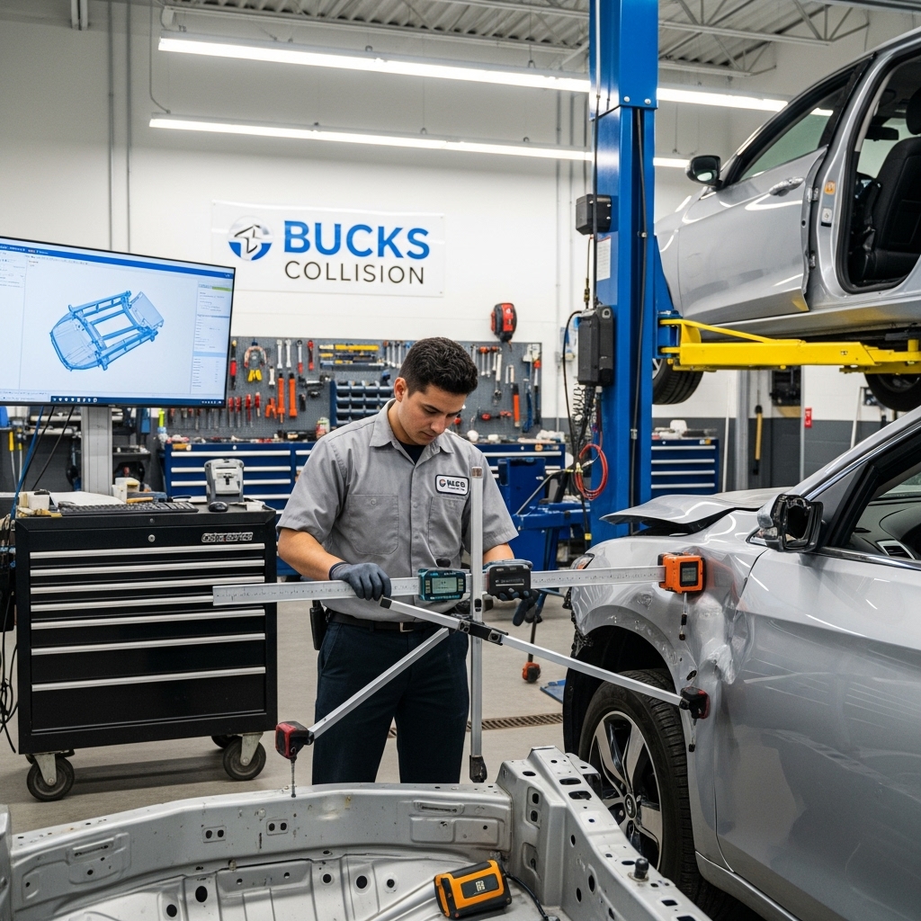 At Bucks Collision, our certified auto body mechanics specialize in comprehensive collision repair services designed to restore your vehicle’s safety and appearance. Whether your car sustained minor impact damage or requires major structural reconstruction, our ASE-certified mechanics are fully equipped to handle every type of collision repair with precision and expertise, following ASE (Automotive Service Excellence) standards for reliable restoration.